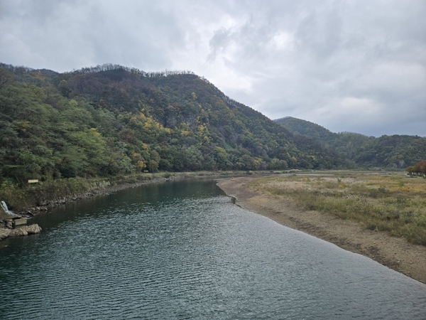 | ▲ 영덕 오십천이 단풍으로 물든 산과 어울려 절경을 뽐내고 있다. | ||