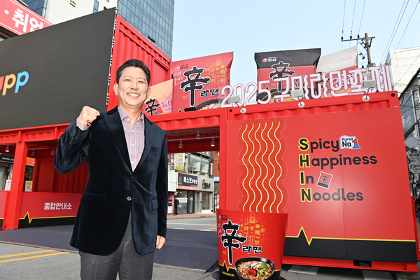| ▲ 지난 7일 김장호 구미시장이 구미라면축제 행사장에서 성공을 기원하는 파이팅을 외치고 있다. 구미시 제공 | ||