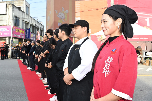 | ▲ 구미 라면축제에 참가한 23명의 명품 셰프와 일본·대만 등 해외 초청 셰프들. 구미시 제공 | ||