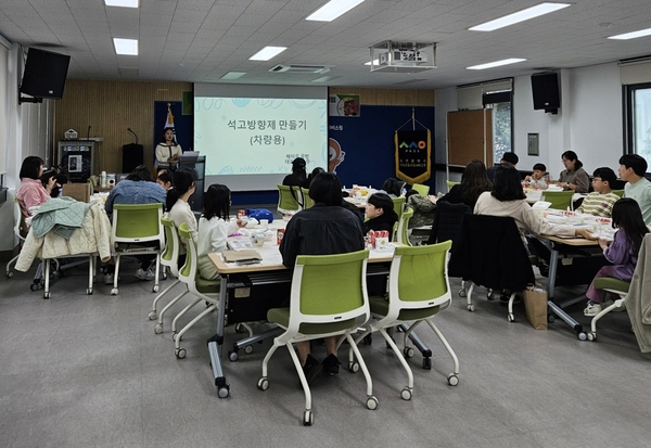 대구행복진흥원은 지난 8일 본원 교육장에서 임직원 가족을 초청해 ‘차량용 석고 방향제 만들기 체험 프로그램’을 진행했다. 이번 행사는 가족친화경영 실천의 일환으로, 직원이 일과 가정에서 균형을 이루며 행복하게 근무할 수 있는 환경을 만들기 위해 마련됐다.