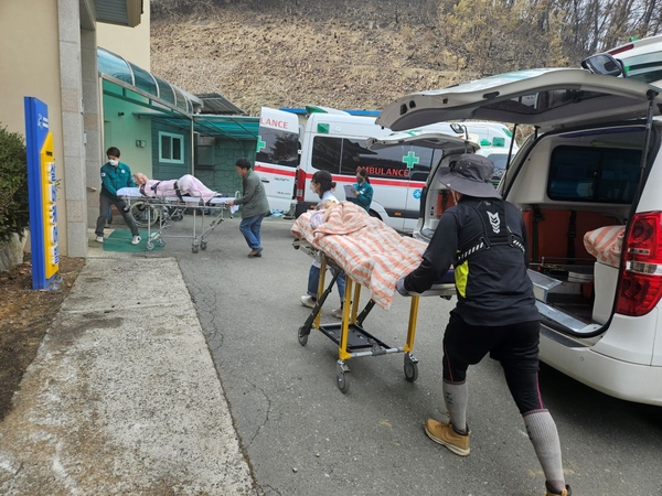 | ▲ 대형 산불 당시 요양시설 및 병원 와상환자 1336명을 인명 피해 없이 전원 안전하게 이송하는 성과를 거둬 재난대응 모범사례로 평가받고 있다. 안동시 제공 | ||