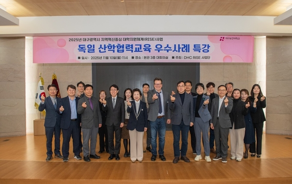 대구보건대학교 DHC RISE사업단은 지난 10일 본관 3층 대회의실에서 주요 보직자와 교직원 50여명이 참석한 가운데 ‘독일 산학협력교육 우수사례 특강’을 개최했다고 밝혔다.