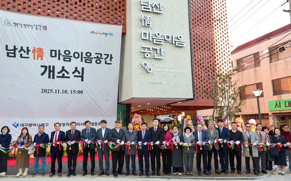 대구 중구는 지난 10일 남산3동에 조성된 복합 커뮤니티센터 ‘남산정 마음이음공간’의 개소식을 열고 본격적인 운영에 들어갔다고 밝혔다. 이번 사업은 국토교통부 도시재생 공모사업 '행복이음의 활력마을, 남산정'의 대표 성과물로, 노후한 약수탕 부지를 새롭게 탈바꿈시킨 공간이다.