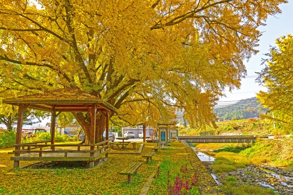 11월 황금빛으로 물든 나무 아래 정자와 쉼터는 가을의 여유를 만끽하기 좋은 명소다. 도심 한복판에서도 고요한 계절의 품격을 느낄 수 있다. 동부동 경주문화원 향토사료관 뒤뜰의 은행나무는 수령 500년을 넘는 노거수로, 경상북도 기념물로 지정돼 있다. 조선시대 관아 시절 심어진 이 나무는 노란 잎이 바닥을 덮는 순간, 도심 속에서도 아련하고 평온한 풍경을 선사한다.