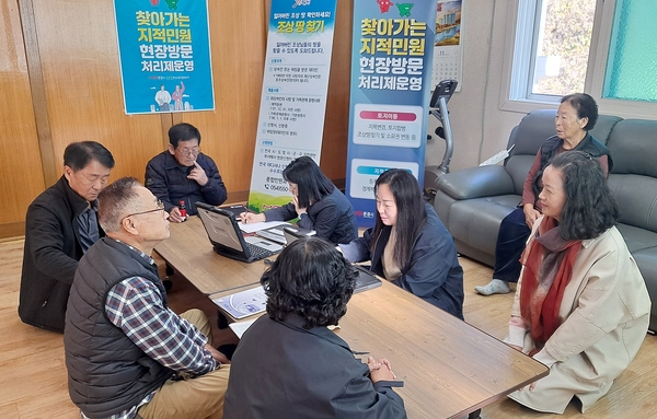 함영진 종합민원과장은 “고령화로 인해 행정기관 방문이 어려운 주민들이 불편을 겪지 않도록 앞으로도 현장을 찾아가는 민원 서비스를 지속하겠다”며 “지적 민원뿐만 아니라 생활민원 전반으로 서비스 범위를 넓혀 나가겠다”고 말했다.