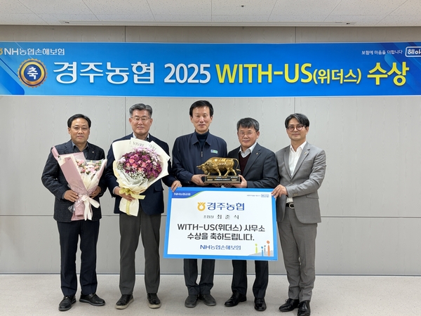 '위더스(With-US) 상'은 NH농협손해보험이 지역별 성장 가능한 거점 농축협 사무소를 육성하고 격려하기 위해 만든 제도다. 경북에서는 올 한해 농작물재해보험 등 손해보험 추진 실적이 우수한 경주농협이 선정됐다.