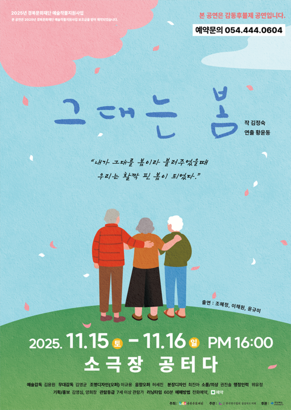 연극 '그대는 봄'은 한적한 시골 동네를 배경으로 티격태격 다투지만 서로 정답게 살아가는 세 할머니들의 모습을 다룬 작품이다.특히 피 한 방울 섞이지 않은 남이지만 서로에게 힘이 되어 준 이번 작품은 보는 이로 하여금 진정한 가족의 의미를 느낄 수 있게 해준다.