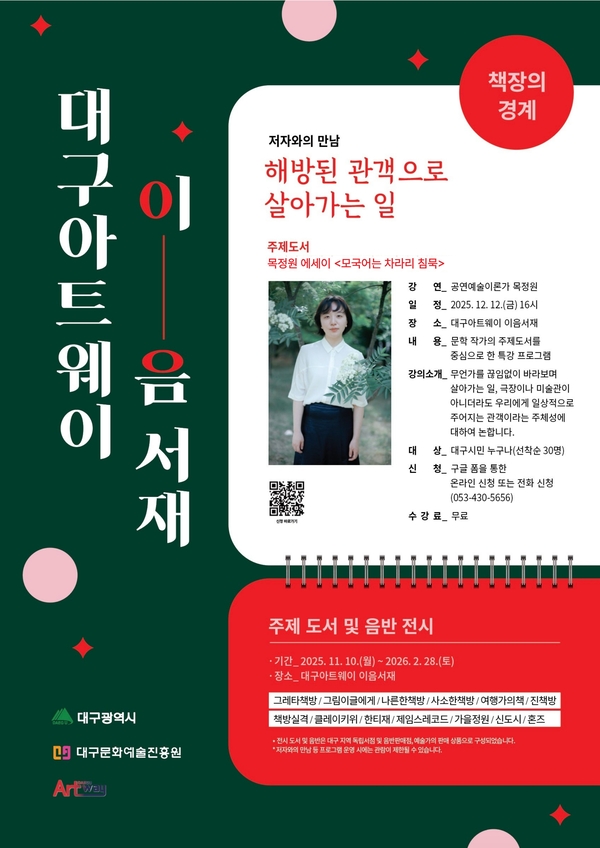 내년 2월 28일까지 도서·음반 전시 '책장의 경계' 개최...목정원 작가의 ‘저자와의 만남’ 특강도 운영