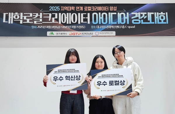 ‘2025 대학 로컬크리에이터 아이디어 경진대회’는 대구광역시와 대구테크노파크, 대구창조경제혁신센터가 공동 주최해 지역 자원의 가치를 재발견하고 이를 창의적 창업 아이디어로 발전시키기 위해 마련됐다. 참가 팀들은 서류평가, 아이디어 캠프, 최종 발표평가를 거쳐 지역성과 혁신성, 사업화 가능성을 중심으로 평가를 받았다.