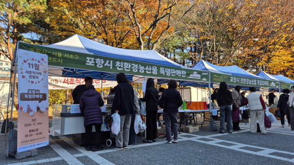포항시가 지난 14일 서울 서초구청 광장에서 ‘포항시 친환경농산물 특별판매전’을 성황리에 마무리했다.