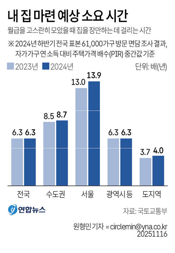 전국 평균 PIR은 6.1배, 수도권은 8.7배로 전년보다 상승했다.