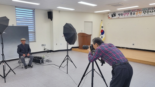 이번 장수사진관은 어르신들의 건강한 여생과 장수를 기원하며 행복한 노후생활을 응원하기 위해 마련됐으며, 어르신들을 위한 대기 공간과 다과도 함께 마련되어 따뜻한 분위기 속에서 진행되었고, 촬영된 사진은 액자 형태로 제작되어 전달될 예정이다.