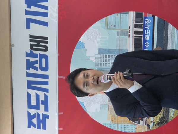 이어 "대구·부산·울산에서 기차로 환승 없이 죽도시장에 바로 내릴 수 있는 철도망이 구축된다면 죽도시장과 중앙상가가 되살아나는 것은 당연하다"며 "죽도시장에 기차역이 들어오면 포항 경제 전체가 살아난다"고 강력히 주장했다.