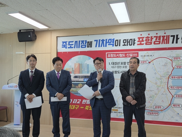기자회견의 취지는 '포항 원도심 철도 복원·도시철도 건설 구상' 공식 제안이다. 기자회견의 핵심은 한마디로 '죽도시장에 기차역이 와야 포항 경제 살아난다'는 것이다.