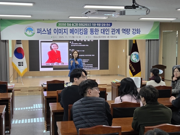 이번 연수는 다양한 기관에서 활동한 전문 강사가 ‘개인 이미지 형성과 대인관계에 미치는 영향’을 주제로 진행해, 청송교육지원청 직원과 미래교육지구 관계자들이 직접 참여하는 체험형 방식으로 운영됐다. 강의는 이미지 메이킹 이론 교육과 분임별 실습으로 이어져, 최근 K-뷰티 열풍과 자기표현에 대한 긍정적 인식 확산 흐름에 맞춰 구성돼 세대 구분 없이 높은 호응을 얻었다.