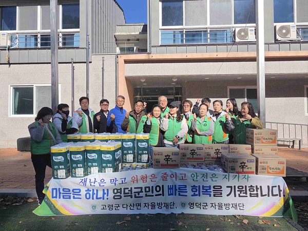 이번 지원 활동은 재난 피해 지역의 조속한 일상 회복을 돕기 위한 자율적인 봉사활동의 일환으로 다산면 자율방재단은 라면, 생수, 휴지 등 생활필수품을 영덕군(성호권운영위원회)에 전달했다.