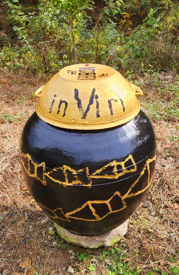 쌍산 김동욱 서예가는 18일 오전 포항 기계면 인비리 암각화 공원에서 질그릇 및 전각을 통해 암각화 공원 조성에 작품을 준비하고 있다.