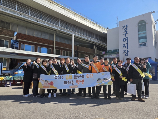 이번 캠페인은 영덕소방서를 비롯해 영덕군, 안전모니터링 봉사단 등 50여 명이 함께 참여해 시장을 찾은 군민들을 대상으로 겨울철에 특히 위험성이 높아지는 화재·안전사고 예방을 집중 홍보했다.