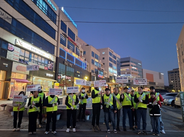 예천군이 오는 12월말까지 도청신도시 호명읍 걷고싶은거리 일대에서 ‘담배꽁초 무단투기 금지 캠페인’을 운영한다. 지난 19일 첫 캠페인은 환경관리과, 보건소, 호명읍 직원 20여 명이 플로깅 활동 및 담배꽁초 무단투기 금지 캠페인을 진행했다. 이옥기 환경관리과장은 “앞으로도 지속적으로 환경보호 캠페인을 추진하겠다”고 말했다. 조봉현 기자 6351744@hanmail.net 다른기사 보기 저작권자 © 대경일보 무단전재 및 재배포 금지 당신만 안 본 뉴스 李대통령 “성과는 충분”… 재계 “국내 투자 확대하겠다” 신천지자원봉사단 대구지부, 대명역·관문시장 환경정화활동 실시 [부서탐방] 지역발전 대동맥...사통 팔달 교통망 확충 앞장 ‘구미시 도로 철도과’ 튀르키예서 독일인 일가족 숨져… 길거리 음식인가, 호텔 오염인가 [단독] 수능 끝났는데도 1시간가량 ‘대기’… 포항 두호고 수험생들 불만 ‘AI 버블’ 경계·美 금리 불확실성… 코스피 4000선 무너졌다 유재춘 이사장, 국회에 새마을금고 규제 완화 건의 李대통령 “성과는 충분”… 재계 “국내 투자 확대하겠다” 댓글삭제 삭제한 댓글은 다시 복구할 수 없습니다. 그래도 삭제하시겠습니까? 비밀번호 닫기 기사 댓글 0 댓글 접기 로그인 후 이용 가능합니다. 댓글 내용입력 비회원 로그인 이름 비밀번호 댓글 내용입력 댓글쓰기 계정을 선택하시면 로그인·계정인증을 통해 댓글을 남기실 수 있습니다. 회원 로그인 비회원 글쓰기 이름 비밀번호 자동등록방지 로그인 옵션 창닫기 주요기사 [이철우 칼럼] 행복을 유예하지 마라 [역사탐방] 일본서 꽃 피운 조선의 음식문화 해병특검, 공수처장·차장 기소··· 국회 위증 사건 방치 혐의 [속보] '6000만원 수수 혐의' 노웅래 전 의원 1심 무죄 與, 대미투자특별법 발의··· 美 관세 11월1일 소급 적용 與, 퇴직 대법관 수임 제한·법원행정처 폐지 추진… 법원 “사법권 침해” 반발