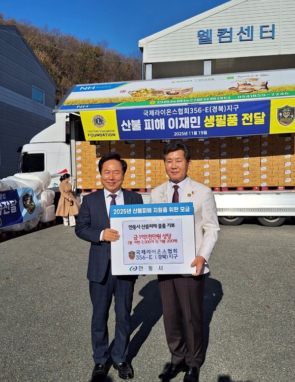 권기창 안동시장은 “지역사회를 위해 헌신하며 나눔과 봉사를 실천해 온 국제라이온스클럽의 노력에 감사드린다”며 “보내주신 물품은 산불로 인해 힘든 시기를 겪고 계신 이재민분들에게 새로운 희망이 될 것”이라고 전했다.
