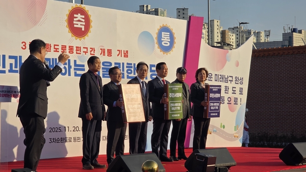 식전 남구농악단 공연으로 문을 연 현장은 개통을 기다려온 주민들의 기대감으로 가득했고, 개회선언·국민의례·내빈소개가 이어지며 이번 개통이 단순한 도로 개통이 아닌 ‘남구 숙원사업의 결실’이라는 점이 강조됐다.