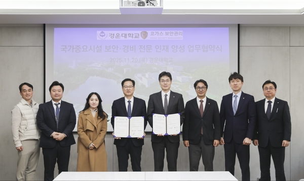 이번 협약은 지난 20일 경운대학교 대학본관에서 진행됐다. 코가스보안관리㈜는 통합방위법상 최고 등급인 ‘가’급 국가중요시설을 포함해 한국가스공사 전 사업소와 주요 국가시설을 방호·경비하는 기관으로, 국가 기반을 책임지는 ‘보안 최전선’ 역할을 수행하고 있다.