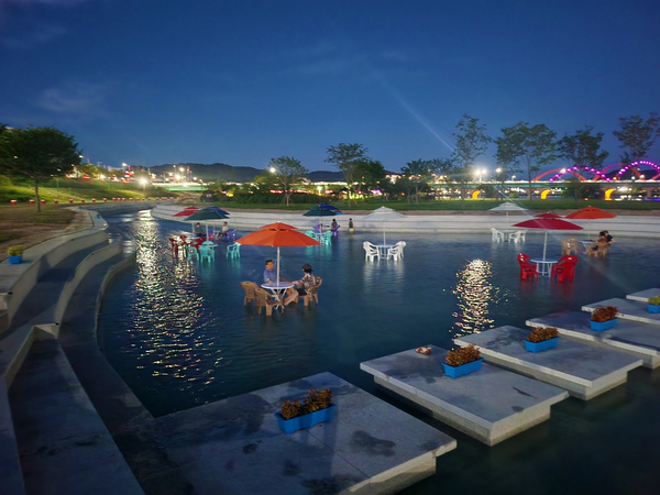 | ▲ 시내 강변 둔치에 조성된 시원한‘물속 걷는 길’은 안동시민에게는 물론 전국적으로 선풍적인 높은 호응을 얻고 있다. 안동시 제공 | ||