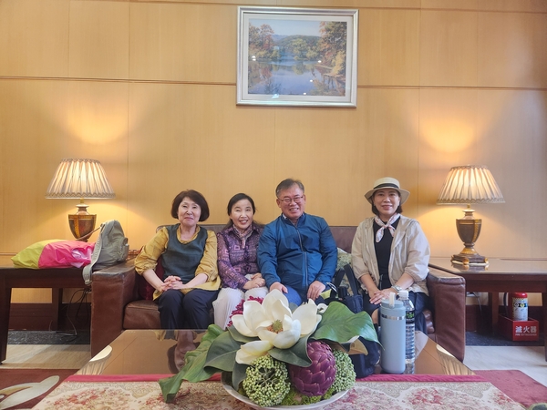 | ▲ 이목 동인 임성화 심금섭 김봉대 김희동 회원(사진 왼쪽부터) 지난 7월 국제시조협회에서 대만문학 기행을 다녀왔다. 김희동 기자 | ||