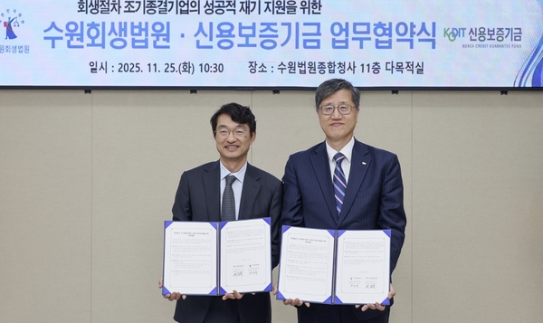 신보는 지난해 서울·부산회생법원과 연이어 협약을 맺은 데 이어, 이번 수원회생법원 합류로 전국 단위 재기지원 네트워크를 완성했다. 법원이 회생 중 기업을 추천하면 신보가 사전승인을 검토하고, 회생이 조기종결되면 후속 자금지원 절차가 본격 작동한다.