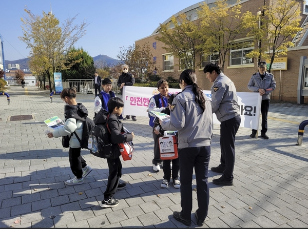 현장에서는 저학년 학생들에게 횡단보도 보행 3원칙(서다, 보다, 걷다)을 직접 시연하며 안전교육을 진행했다. 전단지를 배부해 가정에서도 반복 학습이 이뤄지도록 했고, 유괴·납치 예방 행동 요령도 어린이 눈높이에 맞춰 설명했다.