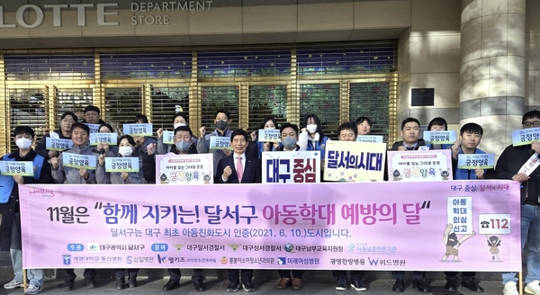 이날 캠페인에는 달서구청 아동보호팀을 비롯해 달서·성서경찰서, 대구남부아동보호전문기관, 각 동 아동위원, 아동학대전담의료기관 등이 참여했다. 참여자들은 예방 리플릿 배부, 현수막·피켓 홍보, 아동학대 발견·신고 요령 안내 등 실질적인 주민 홍보를 이어갔다.