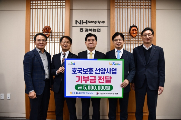 ▲ 사진 우측 두 번째 최진수 경북농협 본부장, 한희원 경북호국보훈재단 대표이사, 김주원 NH농협은행 경북본부장이 호국보훈 선양 기부금을 전달후 기념촬영을 하고있다. 농협경북본부 제공 경북농협(본부장 최진수)과 NH농협은행 경북본부(본부장 김주원)가 지난 25일 경북호국보훈재단(대표이사 한희원)에 호국보훈 선양사업을 위한 기부금 500만원을 전달했다. 양 기관은 K-호국보훈문화 확산과 지속 가능한 농업·농촌 구현을 위해 양측이 서로 협력해 나가기로 했다.