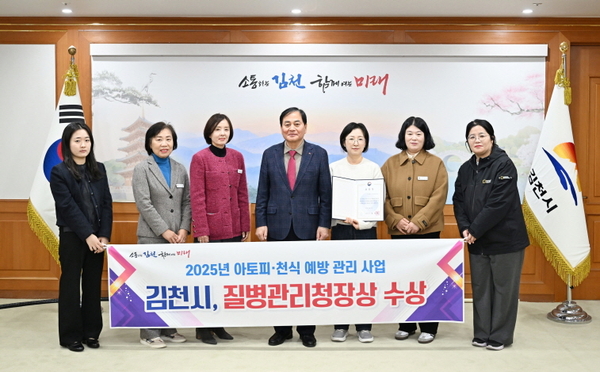 김천시는 지난 24일 서울 피스앤파크 컨벤션에서 열린 2025년 만성질환 연구포럼에서 아토피·천식 예방 관리 유공 부문 질병관리청장 표창을 수상했다.
