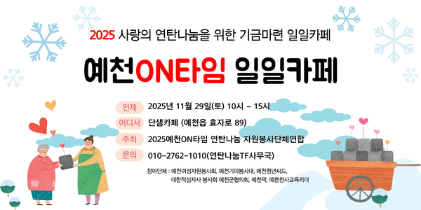 연말 취약계층 위한 온정 나눔… 예천ON타임, 일일카페로 연탄기금 마련