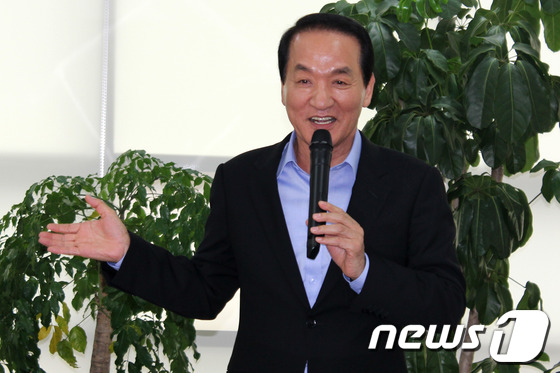 ▲새누리당 당 대표에 출사표를 던진 박창달 전 의원이 새누리당 포항남·울릉당협위원회를 찾아 지지를 호소하고 있다./News1 |