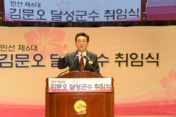 대구 달성군 김문오 군수는 1일 민선 6기 출범의 일성으로 “행복1 등 도시 달성으로 만들 것”이라고 천명했다.