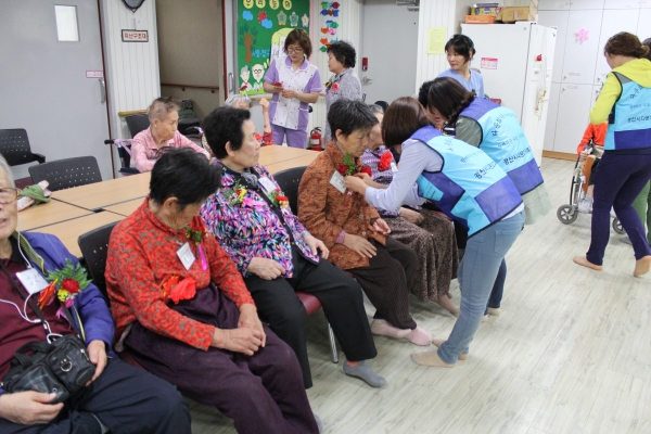재가노인지원센터 방문, 카네이션 달아드리기․식사수발