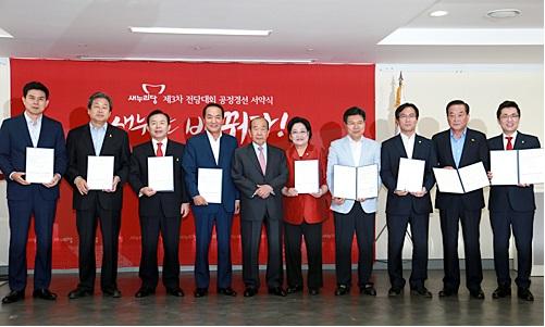 7·14일 새누리당의 전당대회에 출마하는 9명의 후보자들은 4일 오전 서울 여의도 새누리 당사에서 제3차 전당대회 공정경선 및 선거결과 승복 서약식을 갖고 본격적인 선거운동에 돌입했다.