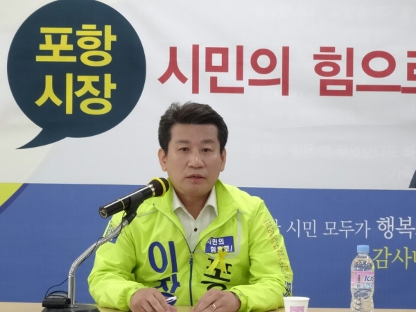 이창균 무소속 포항시장 예비후보는 7일 시청브리핑룸에서 기자회견을 열고 “언론 지상을 통해 제기되는 각종 의혹에 대해 이강덕 예비후보는 해명하고 사실일 경우 후보직을 즉각 사퇴하라”고 촉구했다.