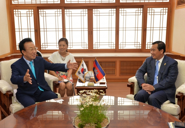 경북도에 따르면 김 지사는 9일 도청을 방문한 수스 야라 캄보디아 국회의원, 숫 디나 주한캄보디아 대사와 새마을세계화, 문화산업 등 다양한 국제교류 협력 방안을 논의하는 자리에서 이와 같이 제안 받았다.