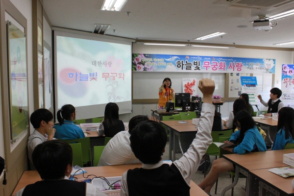 구미시, 오태중학교(교장 김근호)는 7일 사단법인 행복지키미 자원봉사단의 협조로 본교 진로 활동실에서 학생회 대의원과 함께 무궁화 계기교육을 실시했다. 무궁화 계기교육은 무궁화 꽃을 바로 알고 민족의 얼과 혼을 계승하고 실질적인 직업체험의 기회를 제공함으로써 올바른 직업관형성을 위해 마련됐다. 권수진 기자