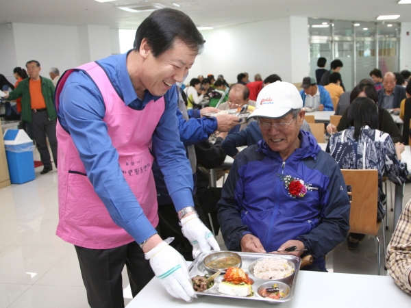 김홍중 평생학습원장을 비롯한 직원들은 기본반찬 외에 영양밥과 추어탕, 갈비구이, 냉가지샐러드, 떡 등의 특식을 정성스레 준비해 어르신들에게 대접했다.
