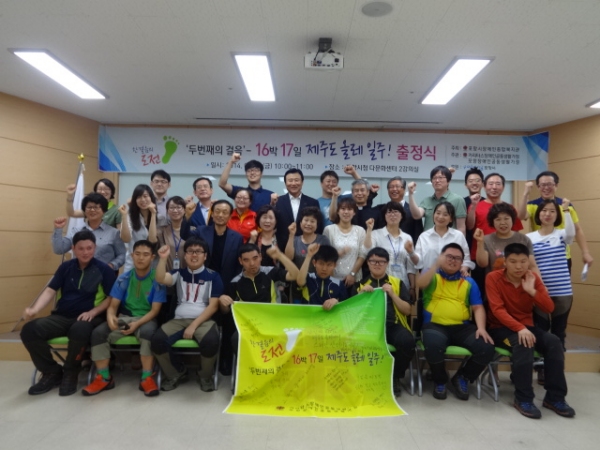 이번 트레킹에 도전하는 팀은 지적장애 2급인 김용식 도전대장을 비롯해 8명의 지적장애인과 안내교사 2명, 자원봉사자 4명 등 총 14명으로 구성됐으며, 11일부터 13박 14일간의 일정으로 제주도 올레길 260km를 걷는 대장정을 하게 된다.