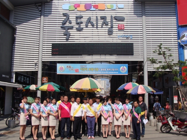 죽도시장연합상인회는 2013년 9월부터 포항대학교 관광호텔항공학과와 협약을 체결하고 매월 2회 친절멘토단의 ‘고객에게 친절하게 인사하기’ 현장 시범 교육과 함께 감사나눔 캠페인을 실시하여 죽도시장 상인들의 친절서비스 향상에 기여해 왔으며, 올해에도 12월까지 친절멘토단과 함께 상인의식 변화를 위한 친절캠페인 등을 추진할 예정이다.