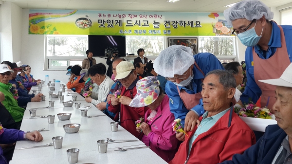 POSCO 제철소장(이정식) 및 임직원, 외주파트너사 40명은 어버이날을 맞이해 포항시 남구 송림노인복지회관 무료급식소를 방문해 어르신들 300명에게 카네이션 달아주기 행사를 가진 후 무료급식 봉사활동을 가져 주민들로부터 좋은 호응을 얻고 있다.
