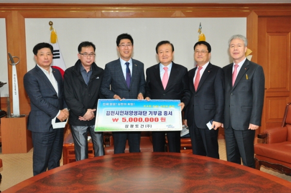 안동시에 위치한 삼광토건(주) 이동찬 대표는 김천시 하수관거 정비사업을 하면서 김천시민들로부터 많은 도움을 받았으며 그 고마움에 보답하고자 김천시인재양성재단에 5백만 원을 기탁하게 됐다고 말했다.