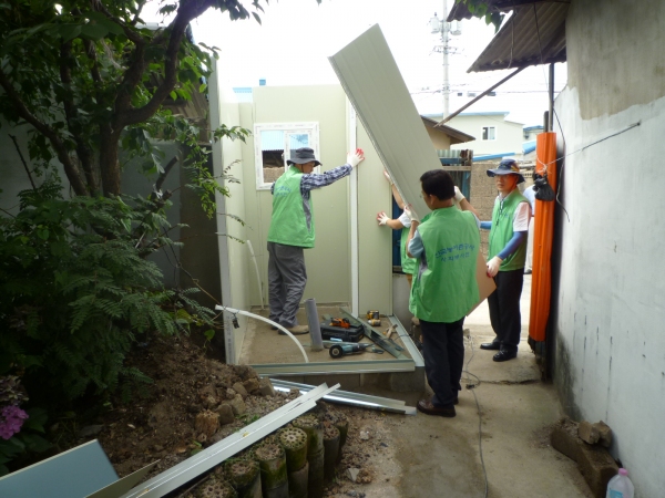 농어촌 노후주택 고쳐주기 봉사활동은 농어촌지역 소외계층의 주거환경개선과 삶의 질 향상을 위해 한국농어촌공사가 매년 지원을 이어오고 있으며, 올해는 경제적인 어려움과 거동이 불편한 독거노인 집을 찾아 재래식 화장실을 수세식으로 교체해 쾌적한 주거환경을 마련해 주었다.