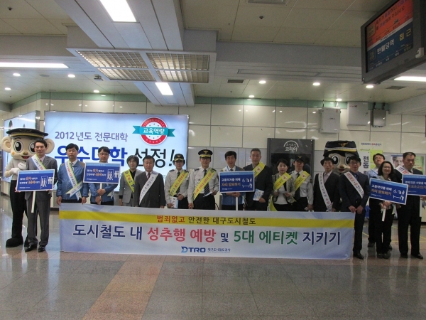 대구도시철도공사는 지난 9일 2호선 반월당과 1호선 중앙로역에서 ‘지하철 성추행 예방 및 5대 에티켓 지키기 홍보 캠페인’을 가졌다.