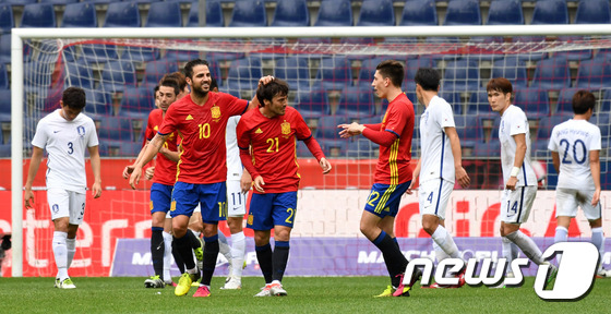 하지만 한국은 경기 종료 1분을 남겨두고 모라타에게 한 골을 더 내주면서 다섯 점차 완패를 당했다.