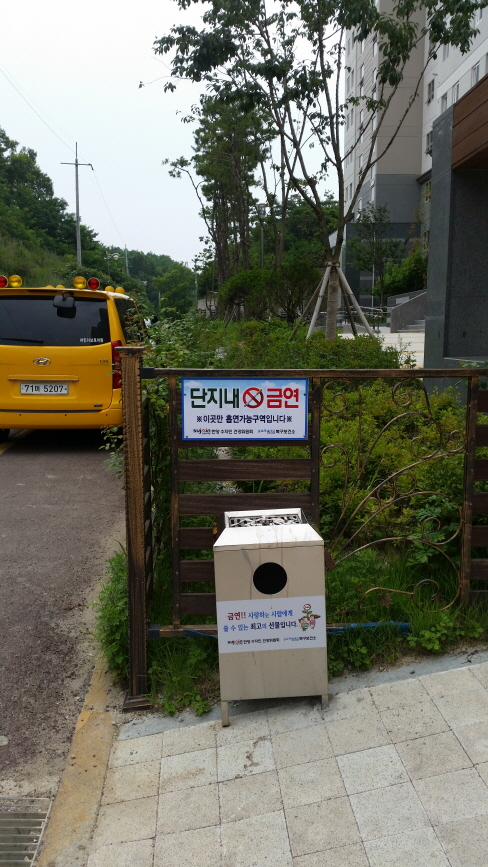 이번 아파트 전면 금연 선포를 통해 단지 내 전 구역을 금연 구역으로 정하고, 실외 흡연 가능 구역을 3곳을 별도 지정했으며 아파트 게시판 공고와 금연스티커 부착, 자체 방송 등을 통해 흡연자들이 흡연장소에서만 흡연을 하도록 유도하고 있다.